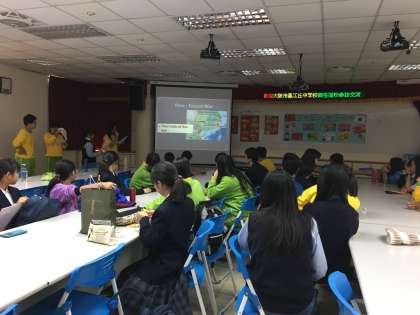 正徳中学では、昼食の後、30分弱お昼寝の時間が設けられています。教室をのぞくと、みんなしっかりと休んでいます。特に9年(3年)生は、寝入っている人もいるくらいです。今回は本校生は、時間がないのでお昼寝はなしで、次の予定など、正徳中のメンバーからレクチャーを受けました。