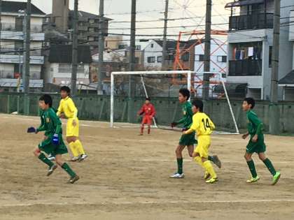 サッカー部では、「冬季ブロック大会」のリーグ戦を迎えています。第1戦は住之江中学です。今日はその試合が、住之江中学校グランドで行われました。
