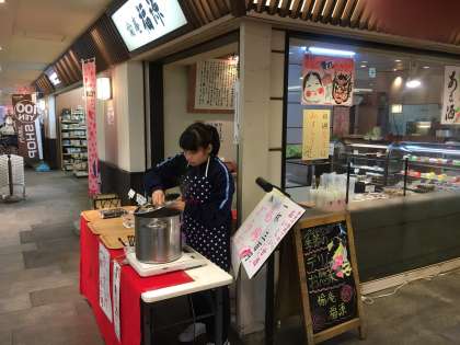住吉大社の駅では、外で甘酒を売ってお手伝いする場面や、お弁当を自分で作ってオリジナル弁当を作ってみて食べている人もいます。