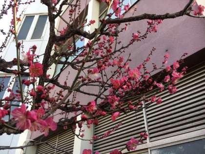 1/31 学校園 「紅梅が五分咲きです。」