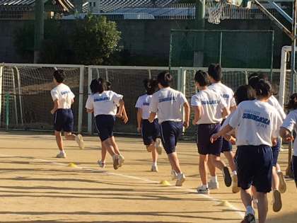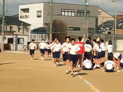 体育は冬場に入って、持久走の授業が行われています。今日はグランドでは、3年生の男子女子が、いっしょに3000m走を行っていました。全員が元気よく完走しています。今、学校では風邪をひいたり、インフルエンザにかかっている人もいますが、早く元気になって、体育などにも参加してほしいと思います。