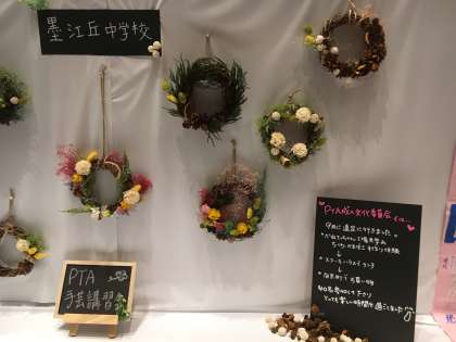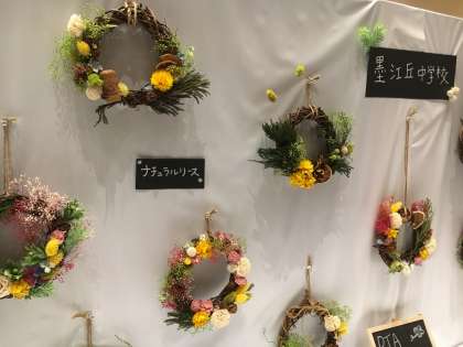 今日4日(土)住吉区民センターでは「住吉フェスティバル」が開催されました。本校からは、PTA 成人文化委員会での制作作品「ナチュラルリース」が展示されました。ホールには大勢の方が来られ、各団体の出品作品を熱心にご覧になられていました。