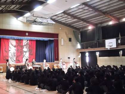 全学年で和太鼓鑑賞会をする予定でしたが、1・2年生は、