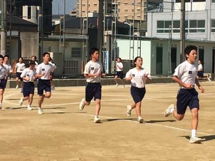 体育では、今、授業で長距離走を行っています。ちょうど3000mで、これは、来週月曜日行われる、「1・2年生駅伝大会」に向けた準備練習です。今日は暖かく、コンディションもよく、みんな気持ちよさそうに走っています。駅伝大会は次の予定で行われます。現地でご覧いただけますので、ぜひお越しください。