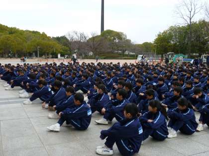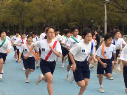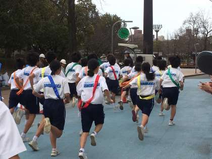 今日、長居公園では、外周道路を利用して、クラス対抗の駅伝大会が行われました。