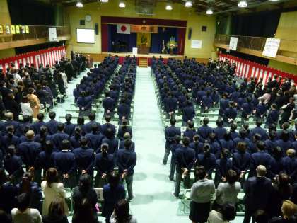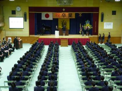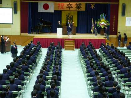 今日14日は、「卒業式」です。今年は本校も38期生の卒業となります。式は思い出のスライド上映で始まりました。そしていよいよ卒業証書が一人ずつにに手渡されます。