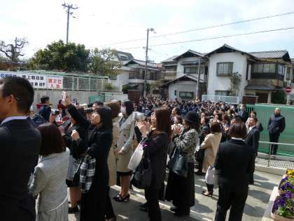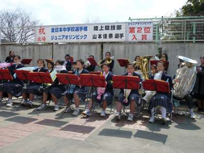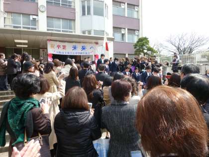 退場のあとは、校門で吹奏楽部の演奏の下、在校生や保護者に見送られて学校を後にします。