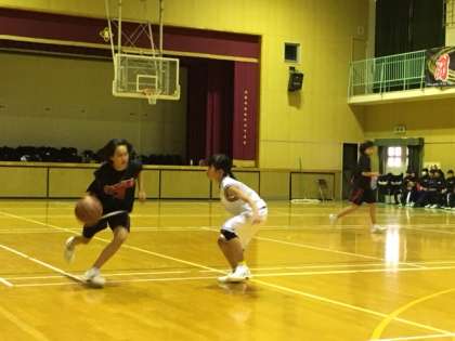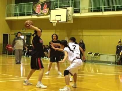 今日18日(土)、大和川中学では女子バスケットボール部が「ニュープレーヤーズカップ(1年生大会)」を迎えました。リーグ戦で今日は4試合戦います。応援に行ったときはちょうど3ゲーム目の成南中学と対戦していました。