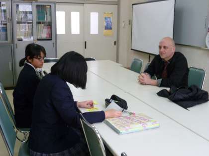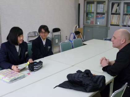 放課後、オーストラリア訪問の二人は、前回に引き続き、2回目の英会話レッスンを受けました。講師は、同じオーストラリア人のエイドリアン先生です。今回はオーストラリア独特の英語なども習い、とても良いウォーミングアップとなりました。