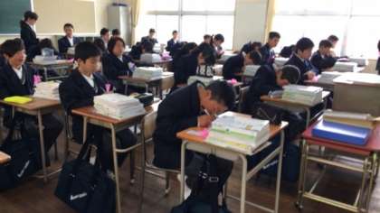 教室では多くの配布物が配られ、たくさんの荷物になりました。いよいよ中学校生活が始まります。始業式は10日(月)ですので、ゆっくり準備ができます。