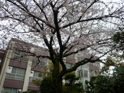 今年は寒さの影響で遅れていました、桜の開花ですが、ようやく咲き始めました。現在、三分咲きといったところですが、この暖かさですぐ満開を向かえることでしょう。ちょうど始業式10日あたりが、見ごろになります。