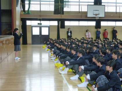 対面式のあとは、1学期の始業式です。校長先生から、新年度に向っての目標も述べられました。お話では本校のモットーとして、「明るく、楽しく、真剣に、そして一生けんめい」が挙げられました。また、「元気よくあいさつする」ことも話されました。