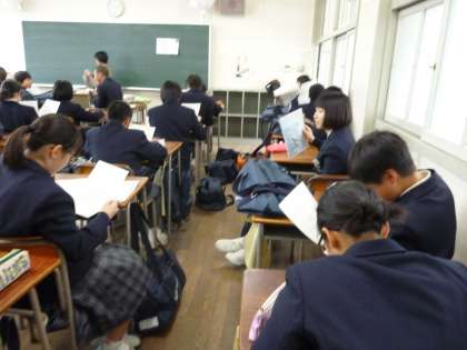 3年生の各教室でも、クラスホームルームが始まりました。ここでも教科書や指示プリントを少し緊張した表情で覗き込む子どもたちが見られました。