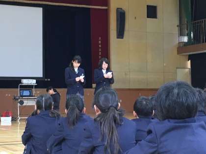 11日(火)6時間目は、新1年生を対象に部活動紹介が行われました。各クラブとも趣向を凝らして、紹介に取り組みました。なお1年生の仮入部(体験入部)は、12日(水)から始まります。