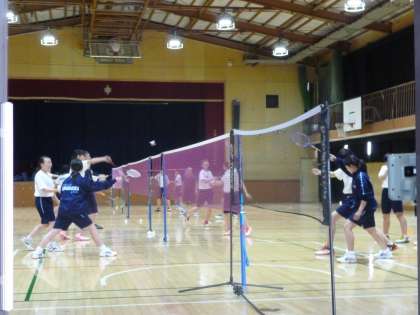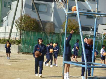 1年生のクラブ仮入部が行われています。今日も多くの1年生が参加しています。グランドでは女子バスケット部、野球部が、体育館ではバドミントン部が練習を体験しています。