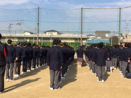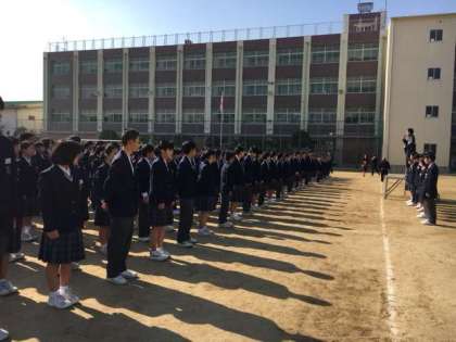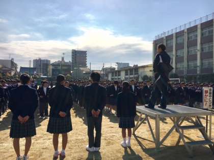 今朝は春らしい晴天となりました。その中で、気持ちの良い全校集会ができました。時間も全員が正確に守ることができています。