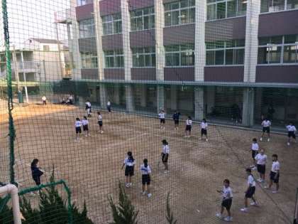 今日は、文芸部の仮入部の様子です。文芸部では競技かるた、カメラ写真など幅広く活動しています。今日も運動場では多くのクラブ活動が行われています。
