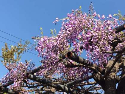 4/19 学校園 「藤棚で藤が咲き始めました。」