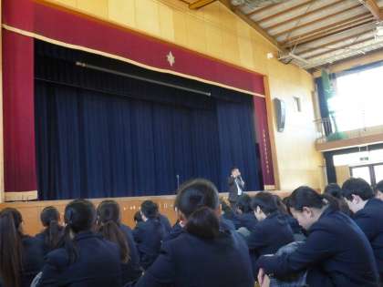 今日24日(月)は定例の全校集会日です。今日は、新年度の生徒会役員、学年代表、学級代表の認証状の授与が行われました。これから、クラスや学年、学校のためにがんばってくれると思います。