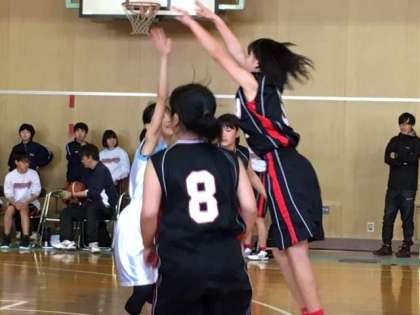 女子バスケットボール部も春季大会が始まりました。初戦は、住之江区の加賀屋中学校です。会場も加賀屋中学校ということで、アウェイでの戦いとなりました。試合は、序盤、接戦で展開します。