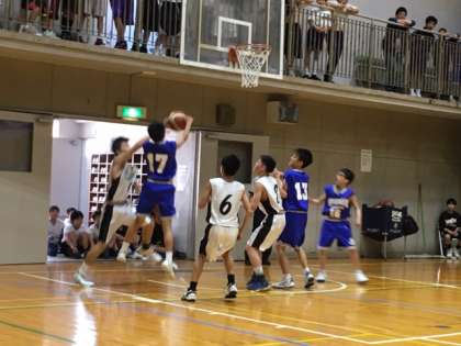 男子バスケットボール部は、大阪市春季大会を二試合順調に勝ち上がって来て、今日は3回戦、強豪、松虫中学校戦を迎えました。会場は住之江中学校です。予想通り、出だしは両校とも接戦で進みます。前半を折り返して、シュート5本差で本校が追う展開で後半に入りました。