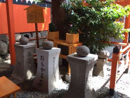 かきつばたで有名な浅沢神社のとなりにありますのが、同じく住吉大社の分社「大歳(おいとぼし)神社です。ここには、「おもかる石」という「霊石」が供えられています。これは願い事をして、それがかなうかどうかがわかる不思議な石です。