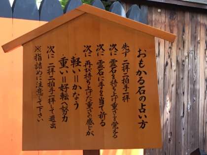3.もう一度、その石を持ち上げて、最初に持ち上げた時より軽く感じたら、その願い事は叶う、といわれています。