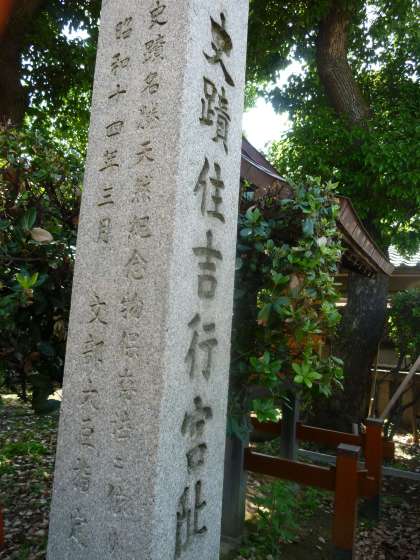 この史跡は、南北朝時代(今から約700年前)の南朝の天皇「後村上天皇」が住吉大社を訪れた際の、仮御所であったところで、国の史跡になっています。もちろん中に入ることはできません。
