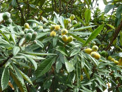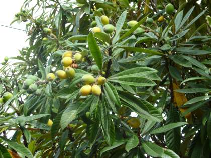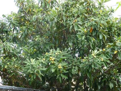 学校園には、大きな「びわの木」があります。今年もその実が大きくなってきました。早い実はすでに黄色くなってきているものもあります。毎年、この後の収穫の時期には、美味しいびわの実がたわわに実っています。