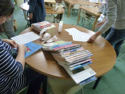 今日は、5月の「図書ボランティアさんの活動日」です。毎月、本校の図書室の充実にご努力いただいています。現在、図書室では、蔵書のデータベース化に取り組んでいます。その数、1万冊に及びます。このところ、ボランティアの皆さんには、このデータ化作業に協力いただいてます。ほんとうにありがとうございます。