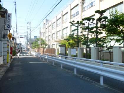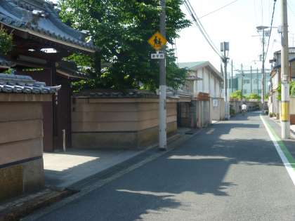 学校から、阿倍野方面、北に向かって歩いてみます。「熊野街道」は、京都(京の都)から大阪(昔は大坂)を経て、和歌山県熊野神社に向かう参拝のための歴史街道です。大阪の起点は、京都から舟で下ってきた、八軒家浜(現在の天満橋付近)から四天王寺、住吉大社から和歌山へという道筋です。学校隣り、室町時代建立の願生寺さんからスタートです。すぐに墨江小学校にさしかかります。ここは昔、津守氏が治めていてお寺の跡という歴史があります。