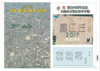 全員で描いた「創立40周年の人文字」のイメージ写真の仮上がりができました、これから調整をして完成させて行きます。とてもきれいな人文字が完成しています。また、校区全域の写真も撮ってもらいました。完成が楽しみです。