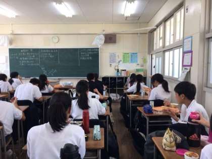 生徒会文化委員会では、輪番でお昼休みの放送を担当しています。今日は、女子3人で、明るくポップな選曲で音楽を流してくれました。教室の雰囲気も何だか楽しそうです。