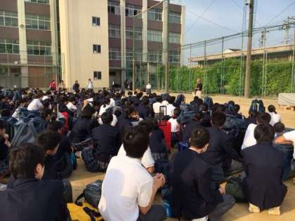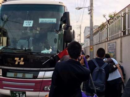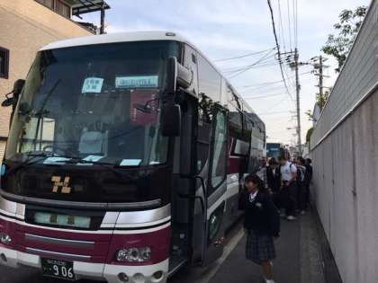 3年生は、今朝、七時に全員集合、出発式のあと、予定通り、七時半、バスは学校を出発しました。