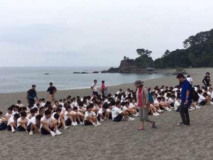 砂浜では、全員で撮影を行いました。これは卒業アルバムに使われます。
