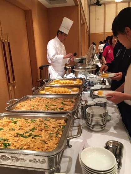新阪急ホテルの夕食は、デザートもバイキングです。子どもたちのうれしい歓声が聞こえてきます。それぞれのテーブルは大盛り上がりしています。