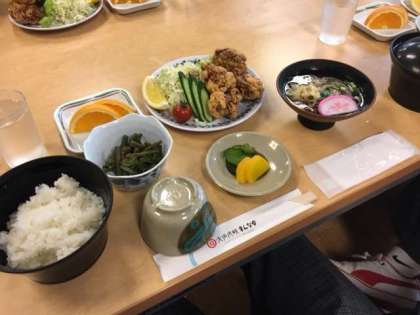 お昼は、そばとから揚げです。みんな、美味しくいただきました。