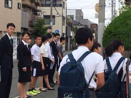 昨日、6月1日から夏服登校になっています。今日も朝、登校時、多くの先生方に迎えられて、一日が始まります。現在、教育実習生の皆さんも正門に立って挨拶してくれています。