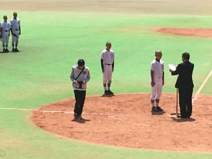 試合はタイブレーク方式で延長に入り、相手チーム4得点、本校が2得点となり、惜しくも決勝進出を逃しました。しかし、すでに3位を決めています本校は、試合の後、表彰を受けました。今後の活躍を期待します。