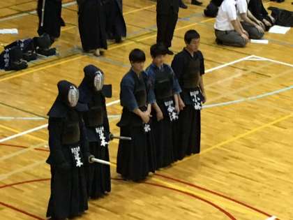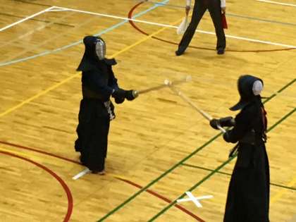 剣道部では、昨日3日(土)個人戦、本日4日(日)団体戦で、大阪市中学校春季総体に臨んでいます。今日はその男女団体戦に出場しました。会場は浪速区スポーツセンターです。