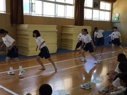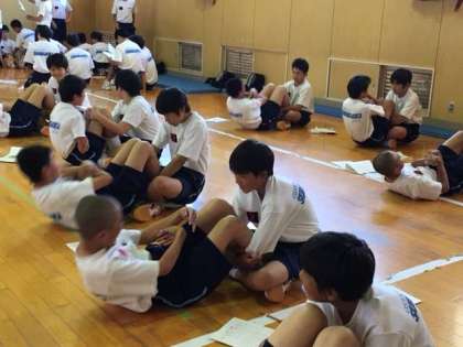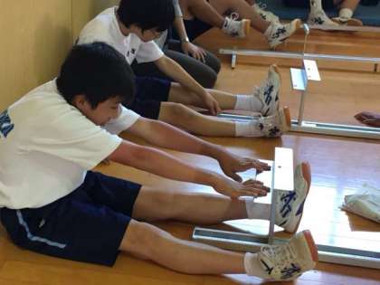 室内測定種目は、握力測定、立ち幅跳び、反復横跳び、前屈、腹筋力などです。