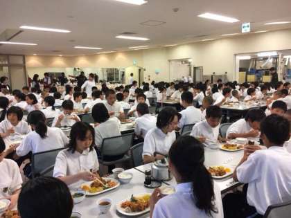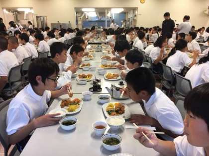 1年生一泊移住少年自然の家、1日目夕食が始まりました。
