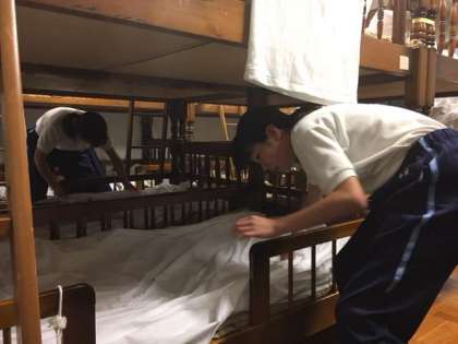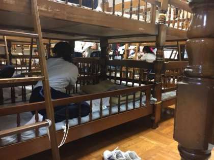 毛布とシーツが、班長に渡され、自分たちで、セットしていきます。自分のことは自分でやらなければなりません。