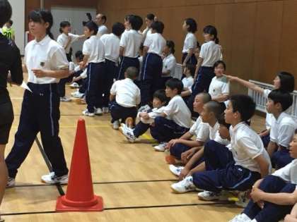 1年生一泊移住少年自然の家、レクリエーション室内オリンピックが始まりました。