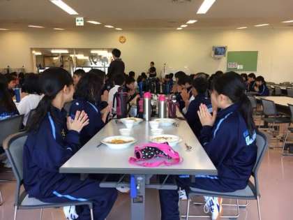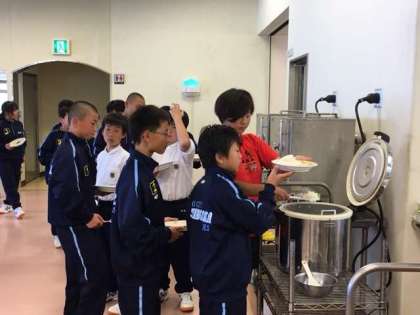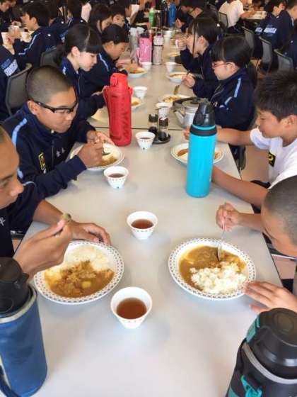 出発前の最後の昼食は、ポークカレーライスです。人気定番のカレーということもあり、すぐにおかわりの列ができました。