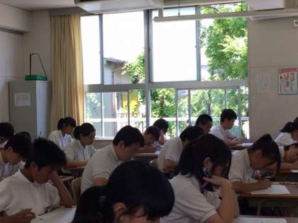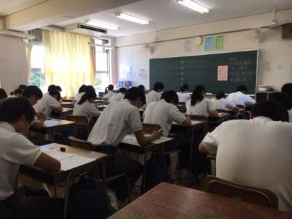 3年生は、いよいよ進路に向けた本格的な勉強が始まりました。今日はそのはじめとして、第1回の校内実力テストが行われています。教室ではさすがに緊張した雰囲気が感じられます。また来週は、大阪府チャレンジテストが行われます。