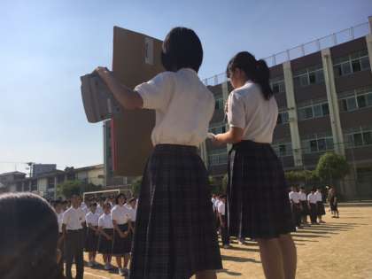 今日は月曜日で、全校集会の日です。保健委員会からは、明日、放課後行われる「AED講習会」のお知らせと、参加の呼びかけがありました。またお話の中では、今週の3年生チャレンジテストと21日から始まる、期末テスト1週間前準備のことが有りました。