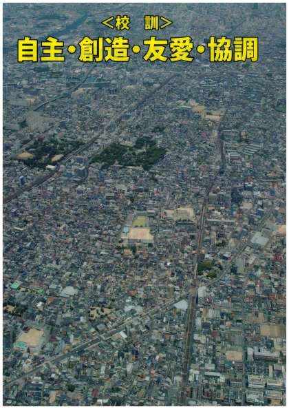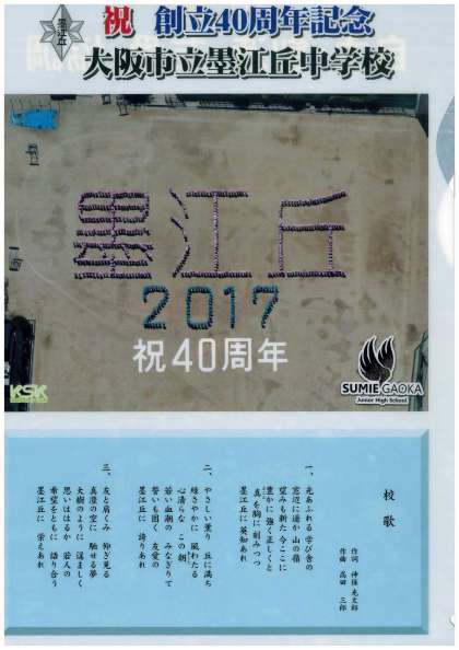 5月に撮影しました、航空写真がクリアファイルとなって完成しました。今日、記念品として全校生徒の皆さんに配布しました。区切りの思い出として大切に使ってほしいと思います。オモテは、全員の人文字写真、ウラは校区全体の写真となっています。