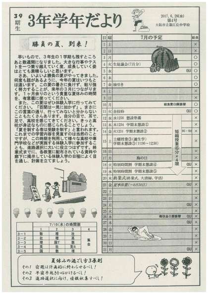 6/28 3年生 「学年だより」が発行されました。