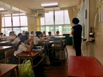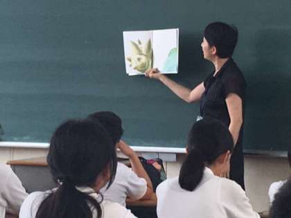 朝の読書は、1年生の読み聞かせです。読書ボランティアさんの読みで、お話を聞きます。本のタイトルは「せかいいち おおきな うち」です。これは、かたつむりが大きなうちに住みたくなり、その殻を大きくし、最後は困ってしまう話です。